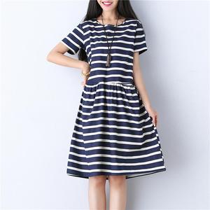 大码女装微胖mm夏装新款文艺范宽松短袖中长