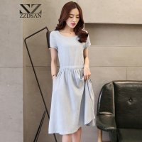 宽松大码 2014文艺范女装 棉麻连衣裙短袖 长裙