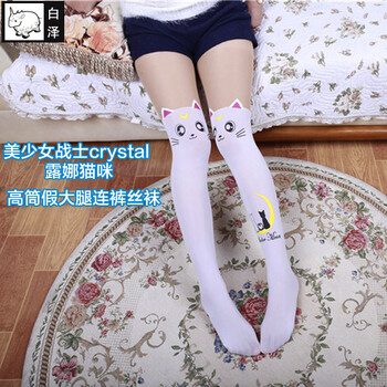 白泽白色纯棉袜子动漫主题长筒袜黑色半筒袜过膝袜动漫周边服装配饰白色