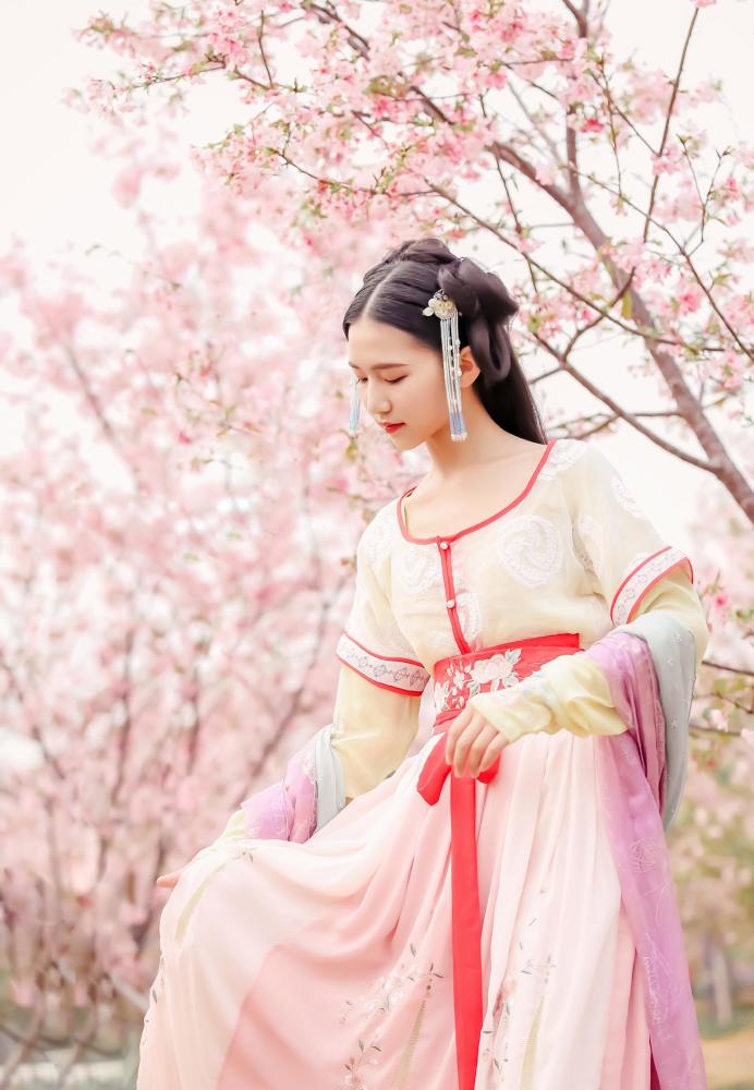 粉红色樱花,清绝出尘的古装少女