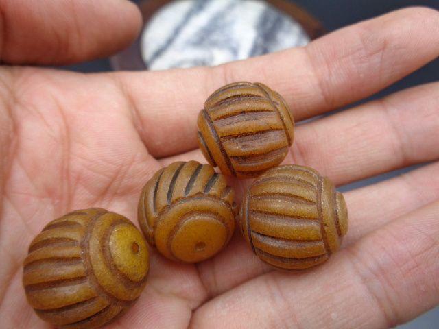 下乡收来的清代灯笼型黄玛瑙珠子_下乡收来的
