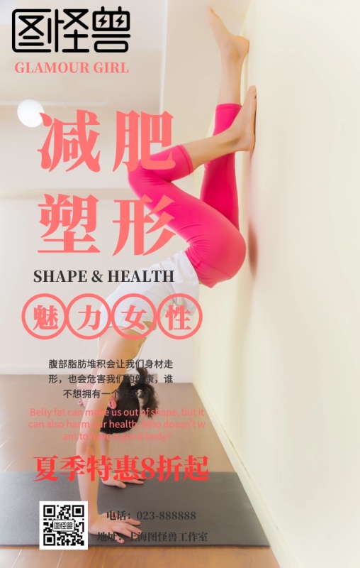 减肥塑形女性健康魅力粉色曲线脂肪简约模板