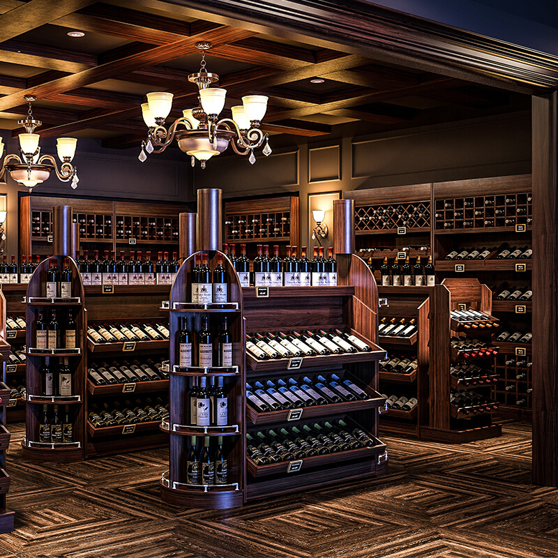 红酒柜展示柜木质红酒中岛柜红酒货架红酒展柜酒柜货架红酒陈列