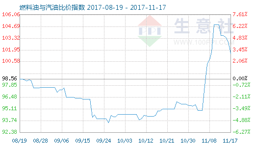11月28日乙二醇与涤纶POY比价指数为101.55
