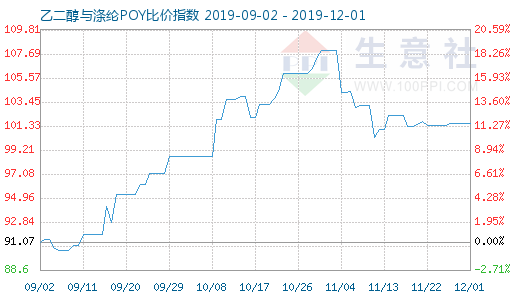12月1日乙二醇与涤纶POY比价指数为101.55