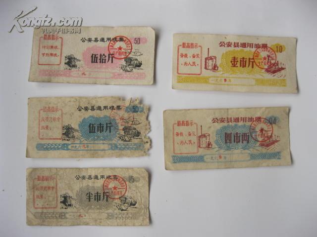公安县通用粮票【伍拾斤伍市斤半市斤油票四市