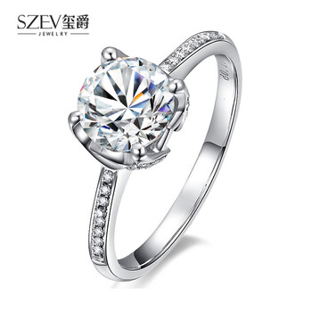 玺爵珠宝 PT950钻石H SI钻石女戒 结婚钻戒 戒