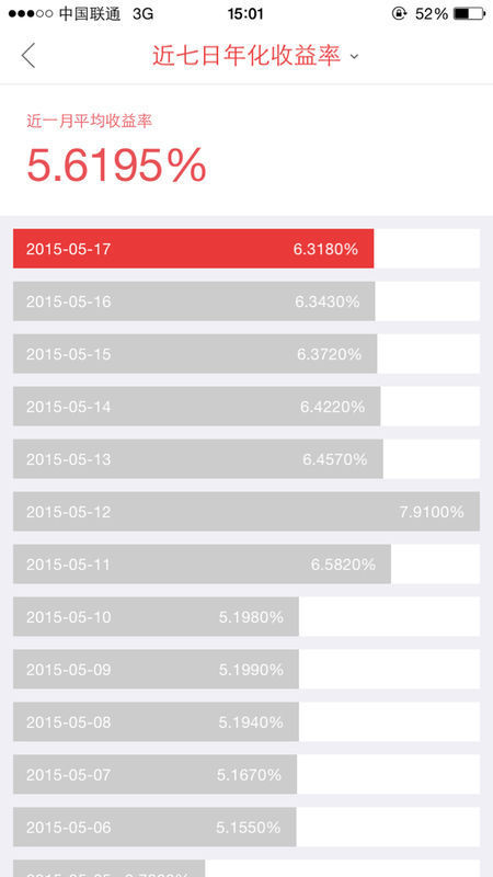 前两张图是余额宝的,每天收益率4.2几,万份收益
