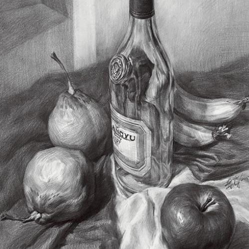 优秀作品素描-石膏眼睛-苹果-刷子-广州新锐精