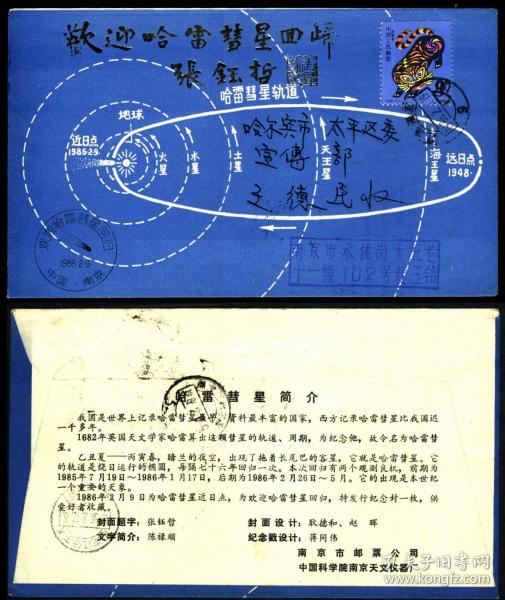 07 丙寅年虎 南京1986.2.9实寄哈雷彗星回归纪