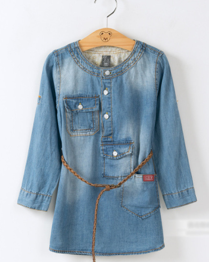 14春夏款童裙 外贸童装 欧美女童可挽袖软牛仔