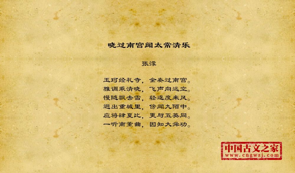 晓过南宫闻太常清乐繁体版、繁体字版古诗晓过