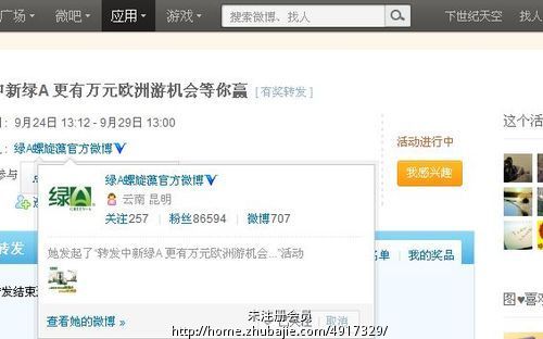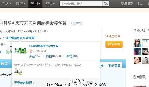 新浪微博:参与平台活动,转发加关注@好友轻松