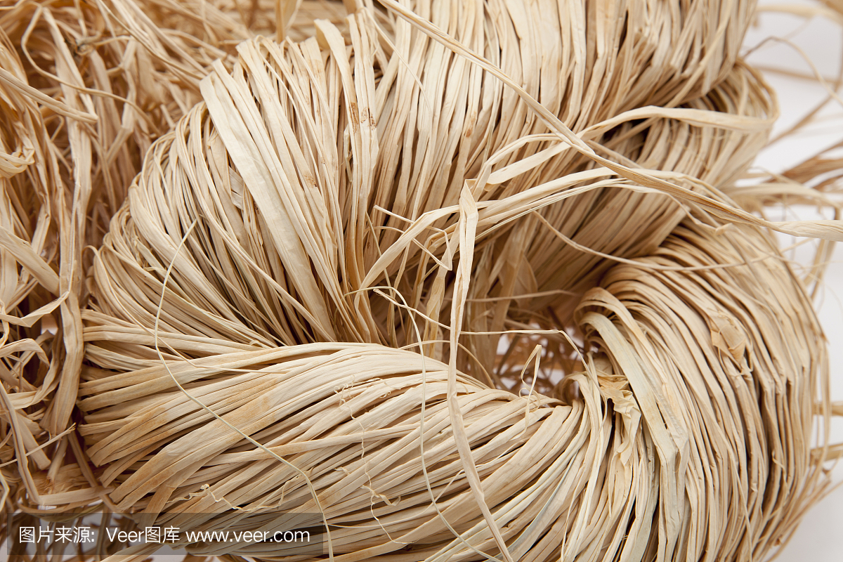 马达加斯加拉菲草束自然的抽象背景。绿色和黄色