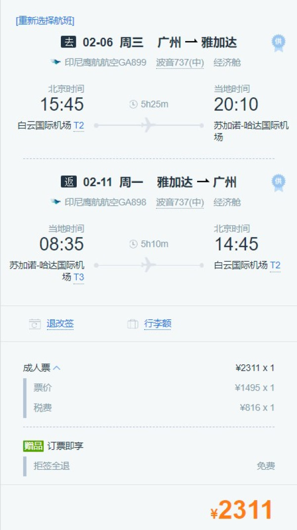 【靠谱转让】上海-雅加达(印尼首都)往返机票,