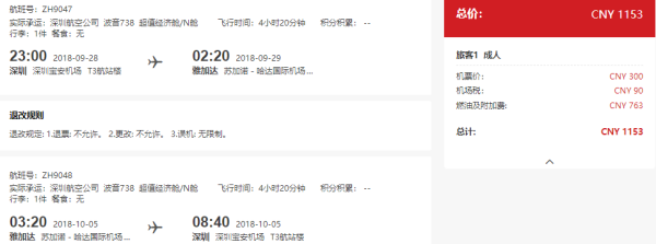 航线特惠!国庆!深圳航空 深圳直飞印尼雅加达往