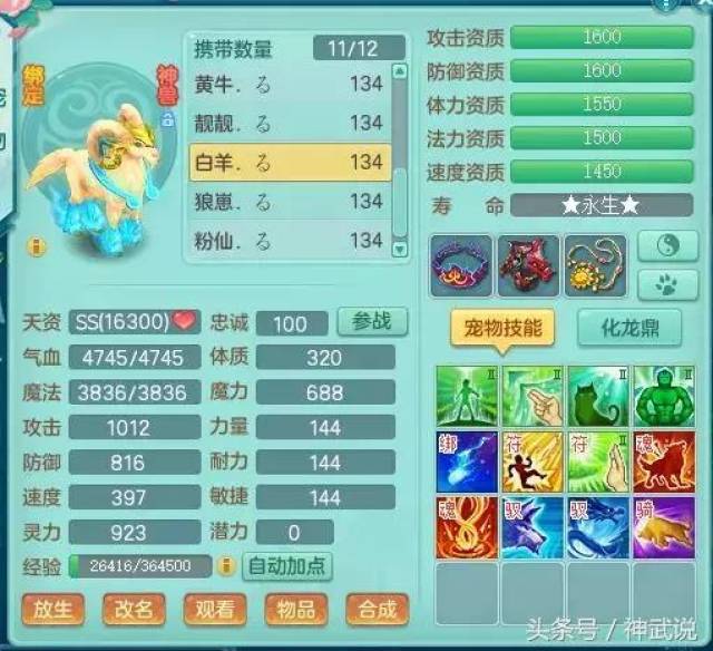 神武3:3只8技能宝宝,5只仙兽,虽是99级,配置却堪比服战大佬!
