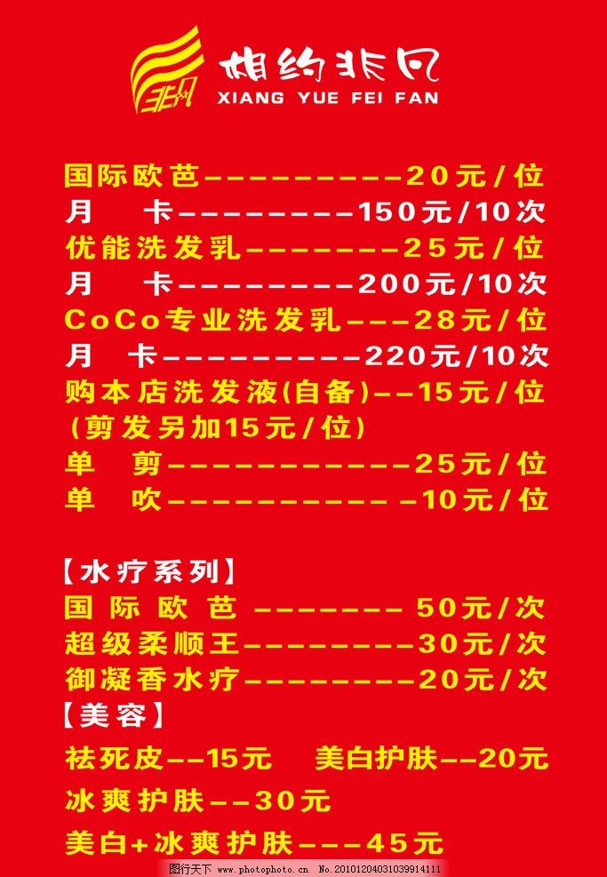 文峰美容美发价目表图片