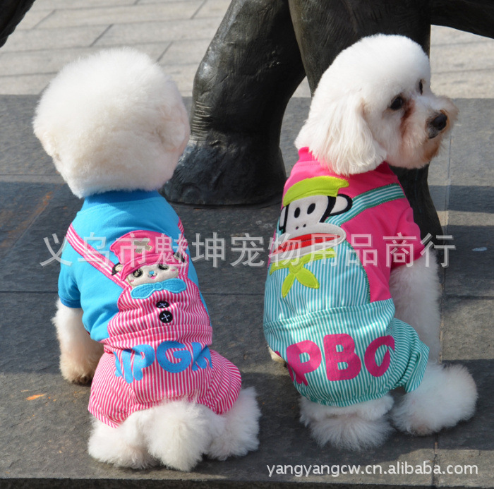 新款宠物春装 狗狗条纹假背带连体衫 泰迪贵宾