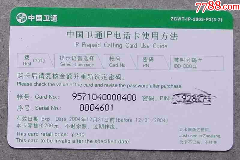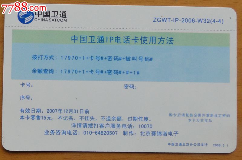 中国卫通17970IP卡100元_IP卡\/密码卡_叁天纸