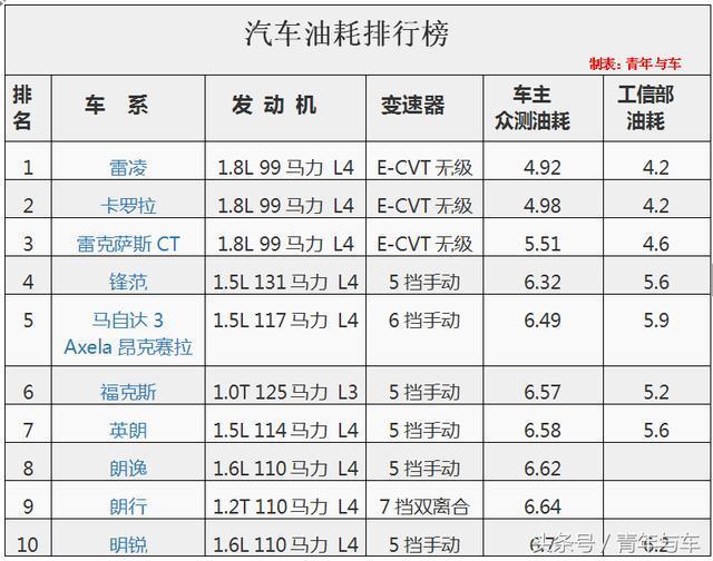 最新!紧凑型汽车油耗排名(全):丰田占据前三,国产排名一般!