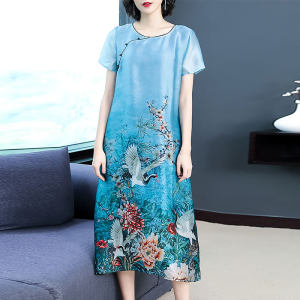 如意风特价清仓断码旗袍V领棉旗袍印花改良短