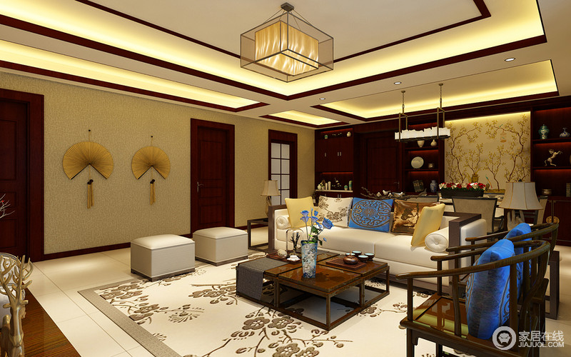 客厅顶面做了一个造型顶,使空间更加具有美感