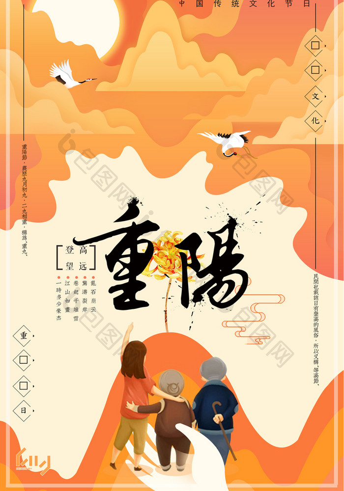 扁平化九月九老人节重阳节传统节日