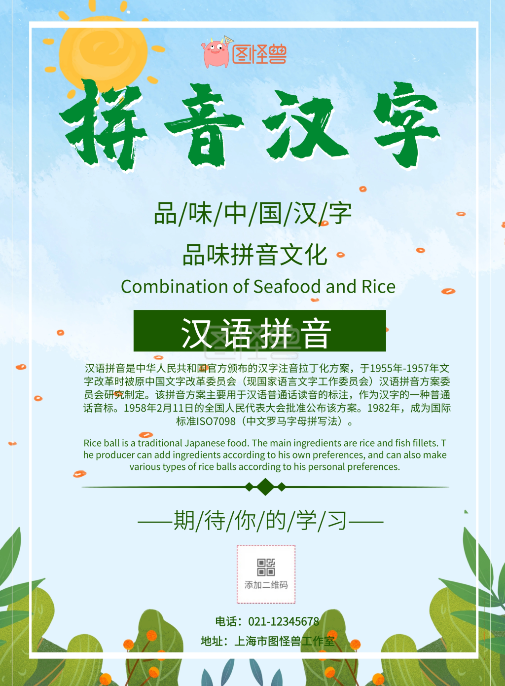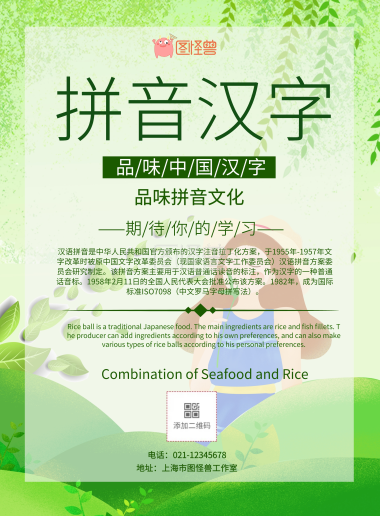 绿色简约拼音汉字宣传海报