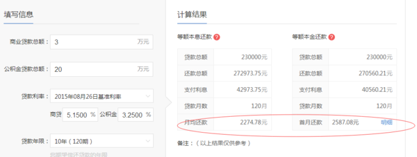 [最佳答案] 贷款20万,10年期限,月供金额、换壳根据还款方式不同而不同,通常有等额本息和等额本金还款两种方式,按照图示基准利率水平,这两样还款方式下月供金额、还款额如下: