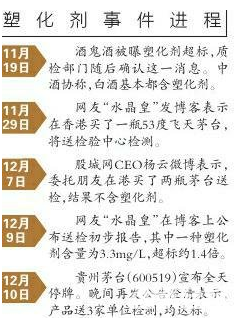 茅台塑化剂事件哪天- 答:11月29日,雪球用户“水晶皇”表示,要将贵州茅台旗下产品拿去香港检测,贵州茅台“送检门”事件大幕拉开。12月3日,有关贵州茅台被网友送检的新闻大量见诸报端。