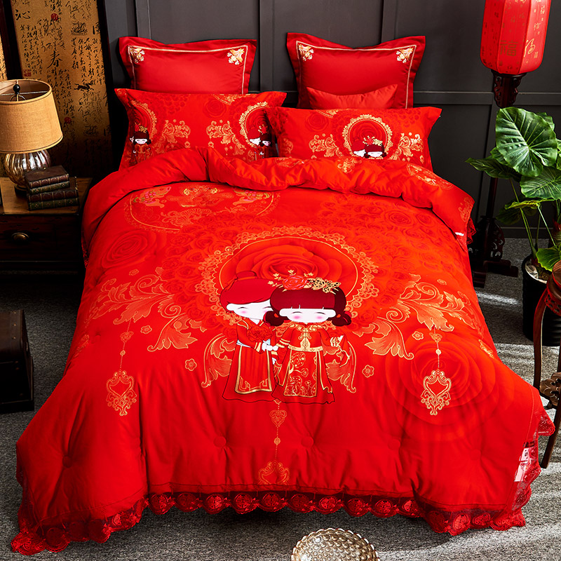 婚庆床品婚房四件套大红色结婚被子喜被套