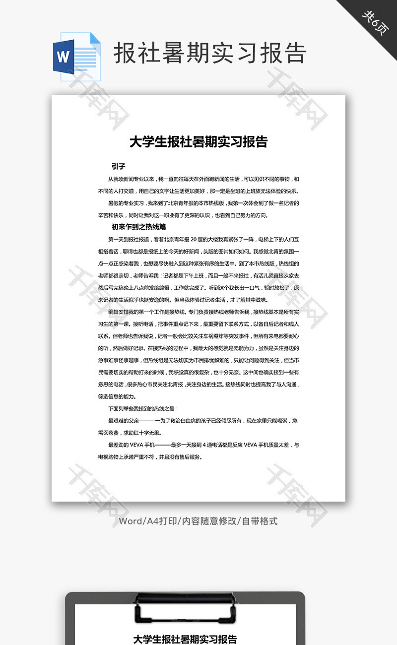 报社实习报告总结 散文小子 2014-10-14 13:10 为了让自己能更早更好地走进社会,融入社会,提高自己的工作能力和应对能力,结合自己所学专业(新闻