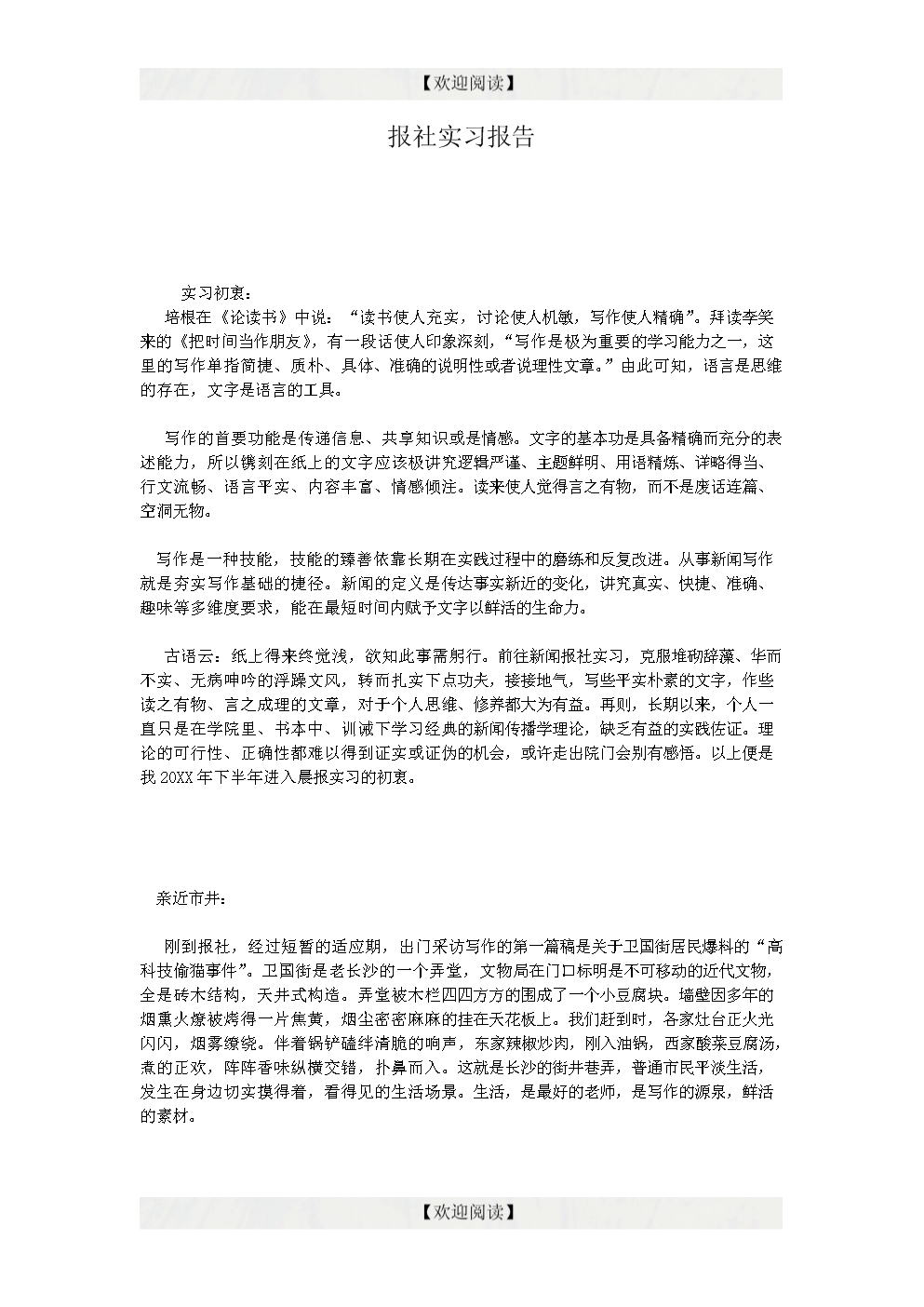 实习报告是指各种人员实习期间需要撰写的对实习期间的工作学习经历进行描述的文本。相关报社的实习报告内容,一起来看看!实习地点 :*报社实习