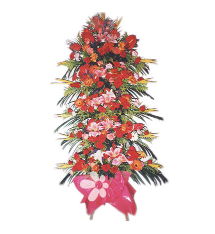 骏业日新:红掌9枝,粉香水百合8朵,白百合