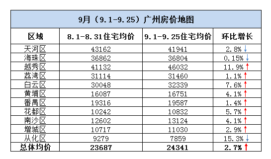 9月广州最新房价地图 越秀区均价已破4.6万-中商情报网