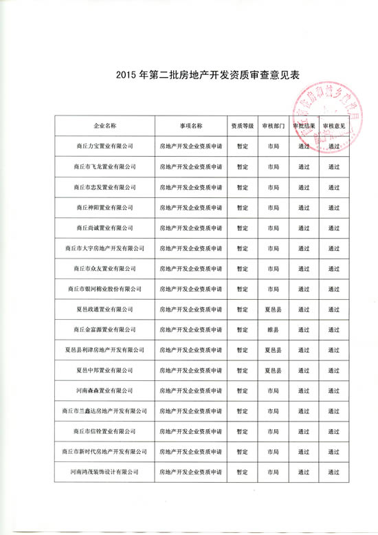 商丘住建设局第二批房地产开发资质审查