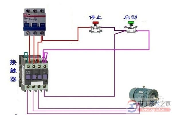 接线图工作原理: 1、启动时,按下启动按钮,由电源来的控制电流经断路器--电源线--停止 2、停机时,按下停止按钮--控制回路断电--接触器弹出复位--主触头断开负载辅助触点断