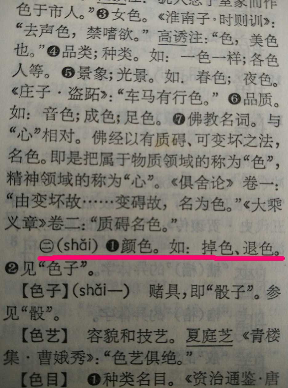 “褪色”(大家都习惯于读tuì sè,并且在网络上的大多是词典中都是显示的tuì sè,但在出版的诸多权威词典、字典中,已标明是tuì shǎi, 所以读 tuì shǎi )同学们注意,一定