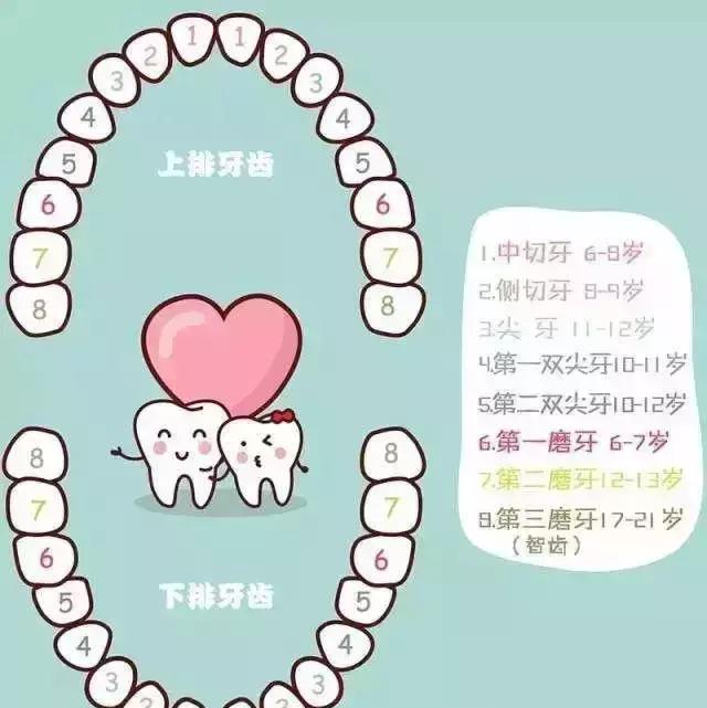 [最佳答案] 恒牙牙胚自出生后开始发育钙化,到6~7岁开始萌出,共有32个,一般到20岁出齐。在恒牙萌出时乳牙相继脱落,其时间顺序如下: 6岁:出下两门牙,同时在第二乳磨牙的后面出第一