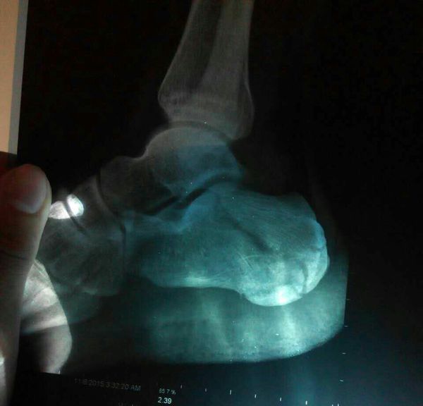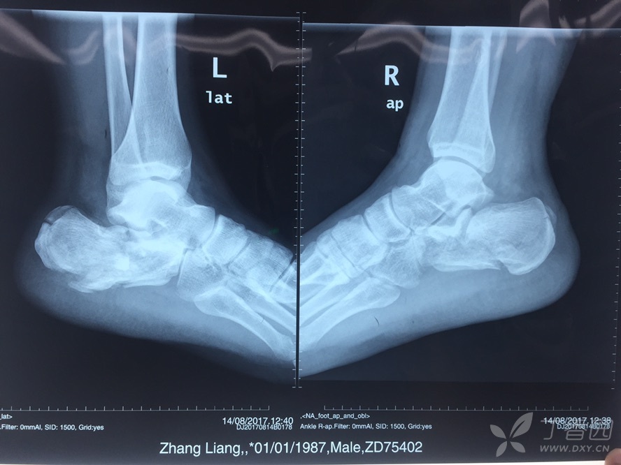 跟骨骨折 第一张是骨折当天拍的 第二张是