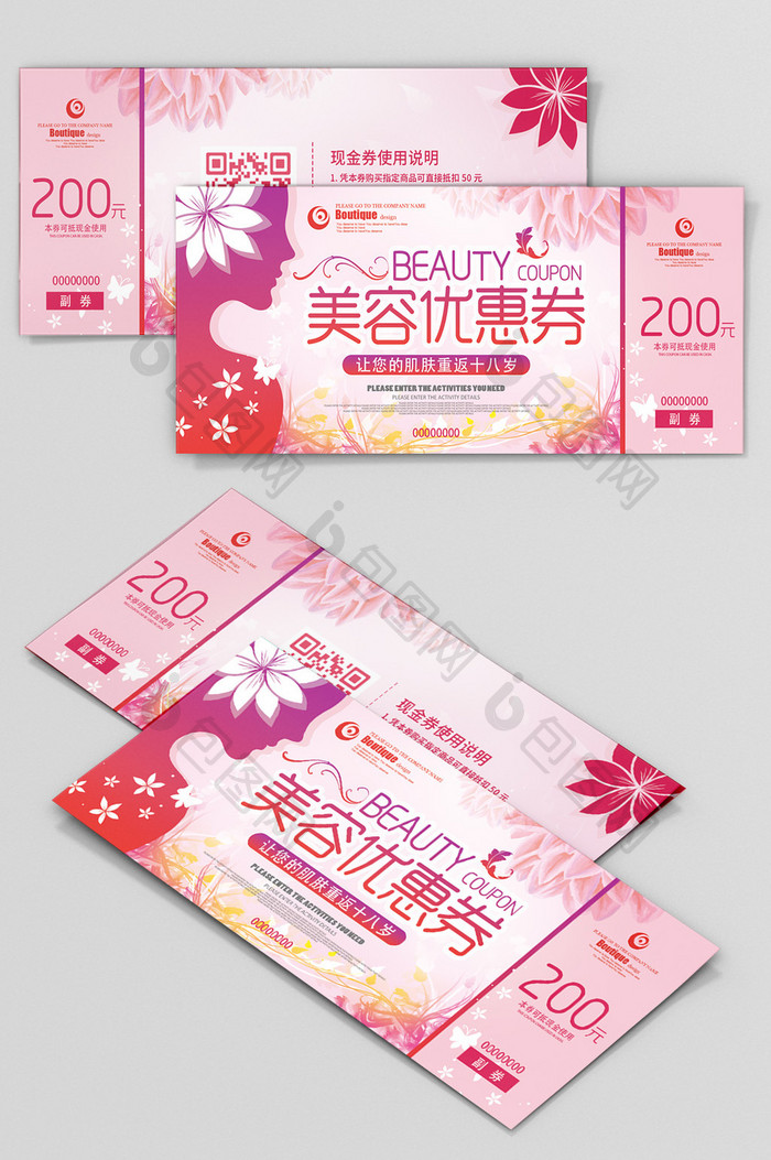 女性粉色200元美容优惠券模板免费下载_