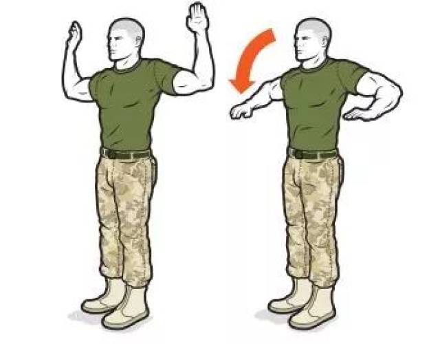 1、俯卧撑练习 要求:两手撑的位置靠近腹部,身体保持在一个平面,支撑快起、慢落,身体不要塌腰,每组10-20次。 2、立卧撑练习 要求:成俯卧撑时,身体不要接触地面,撑起的同时收腹站立,其它和俯卧撑要求相同,每组10-20次。 3、举哑铃练习 要求:两脚自然站立,上体正直,挺胸抬头,两臂屈臂快举、慢落。下落时