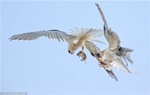 白尾鸢妈妈训练孩子空中接食瞬间_新闻