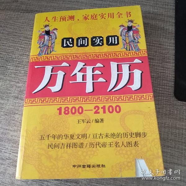 《1800-2100民间实用万年历(修订版)》民间吉祥图谱,历代帝王、名人贤士图表、天文历法、家庭医疗与保健、家庭生活有学问、处世社交、购物消费与防骗,千古贤文、实用对