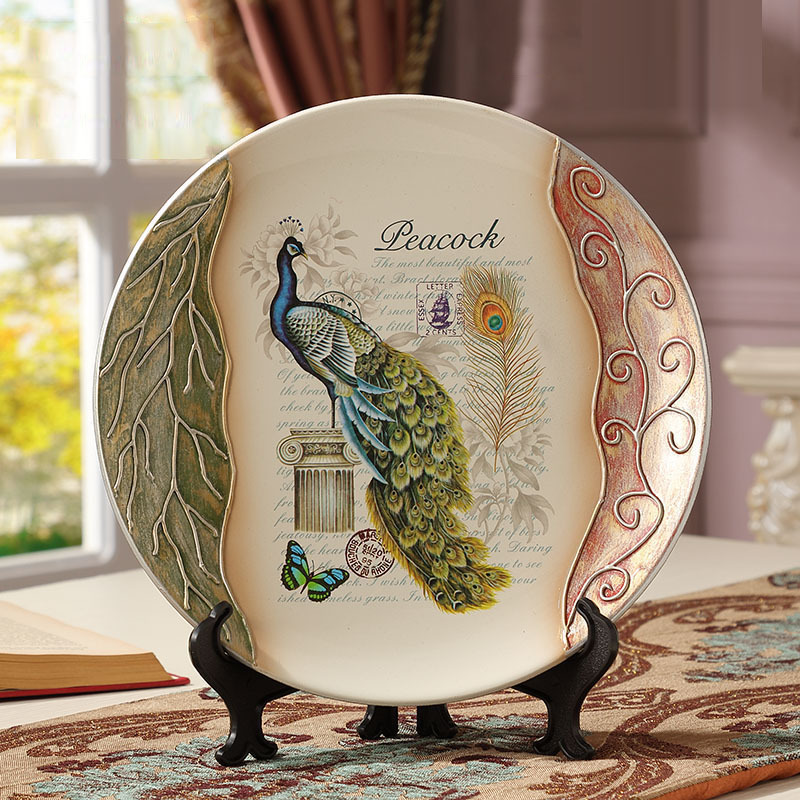 风装饰盘子摆件12寸家居饰品客厅陶瓷摆盘
