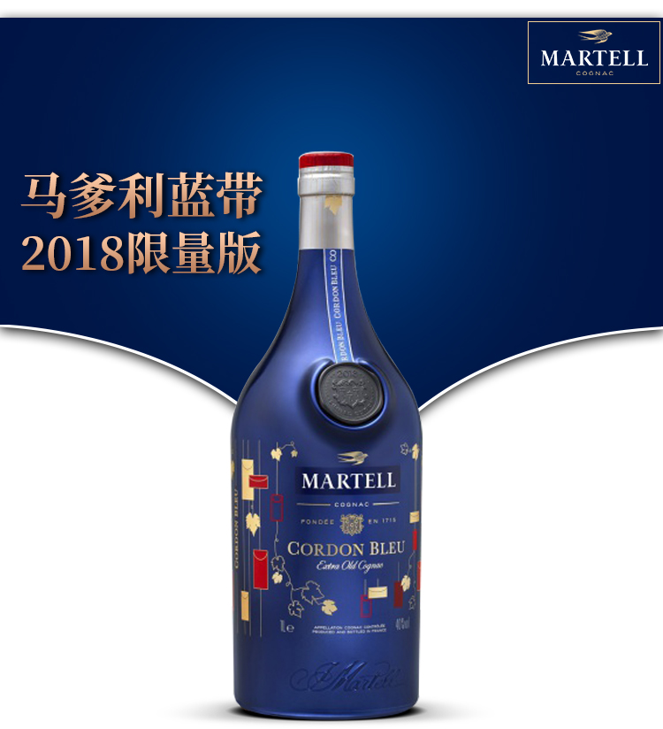法国进口洋酒 马爹利 蓝带Martell 干邑白兰地 2018年限量版 700ml