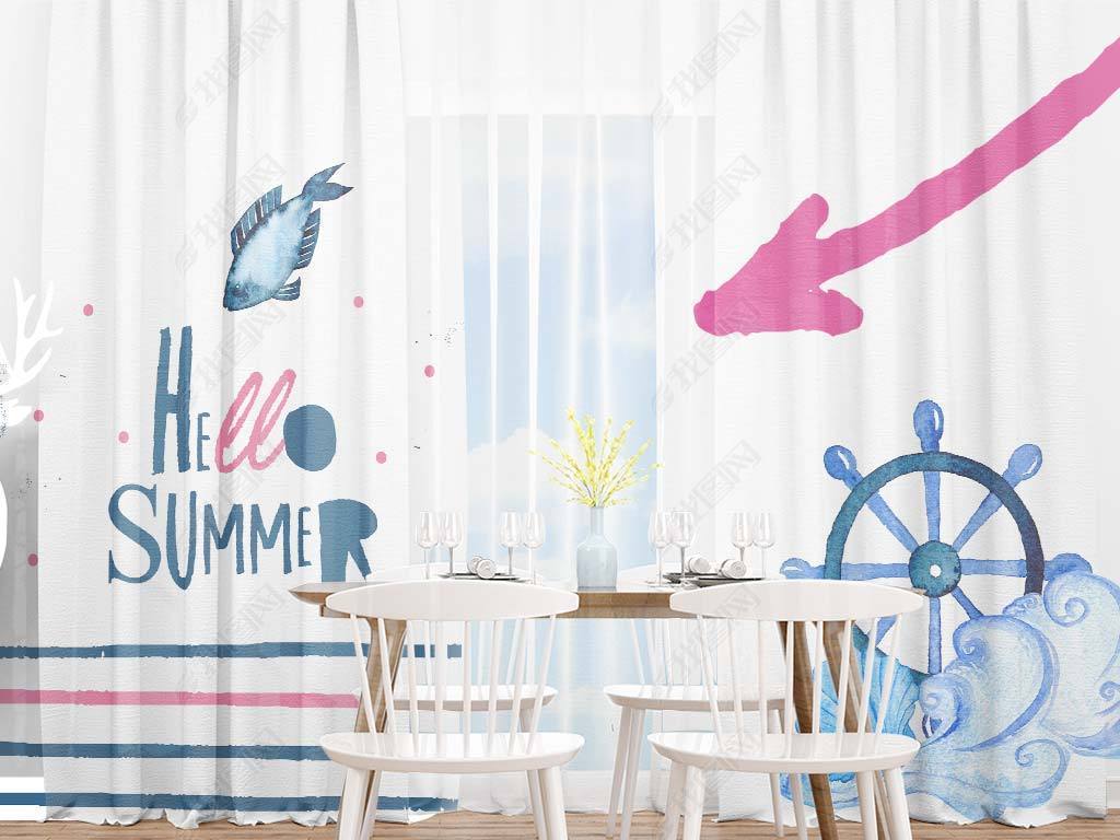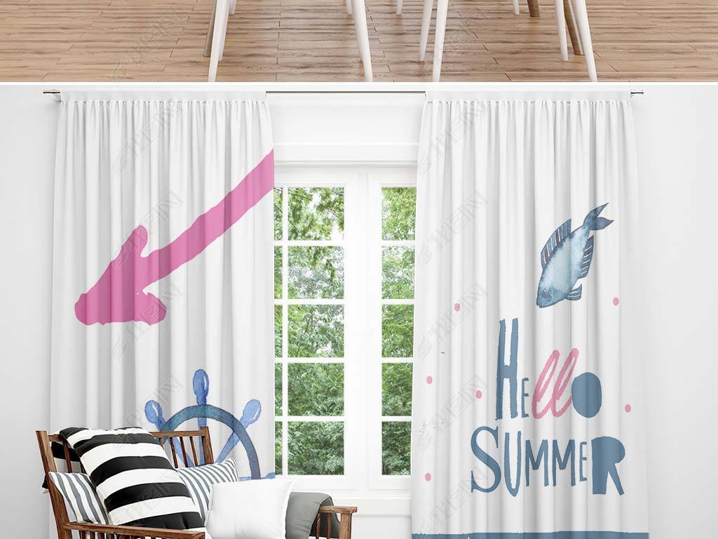 现代北欧水彩清新仙人掌英文北欧窗帘