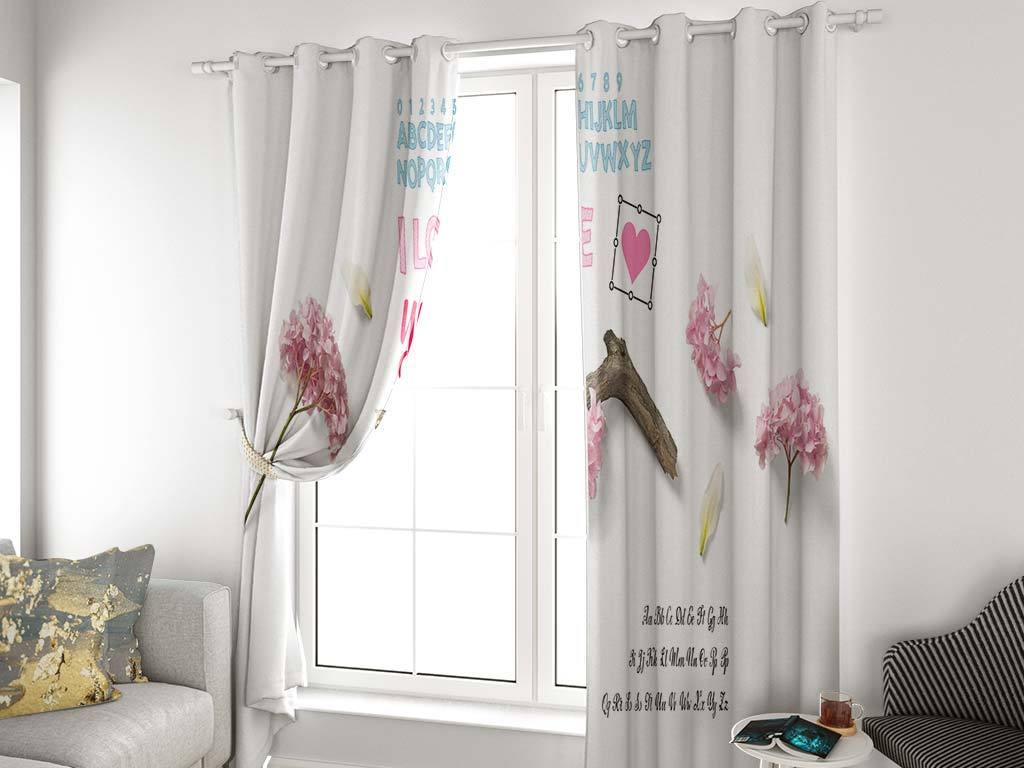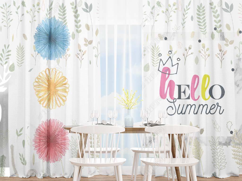 北欧小清新透明纱窗花卉英文窗帘布艺
