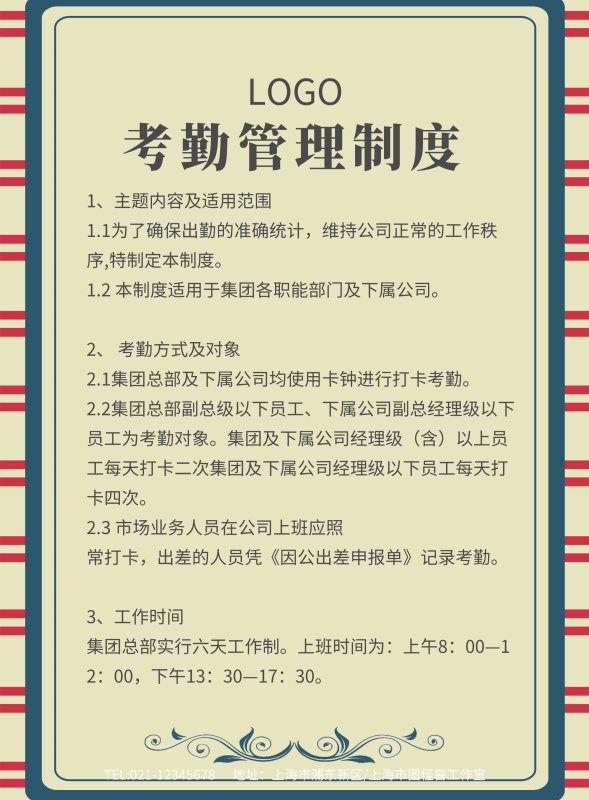 考勤管理,严肃工作纪律,有效提升员工的敬业精神,并使员工的工资核算做到有法可依,结合【 】有限公司(以下简称“公司”)实际情况,特制定本规定